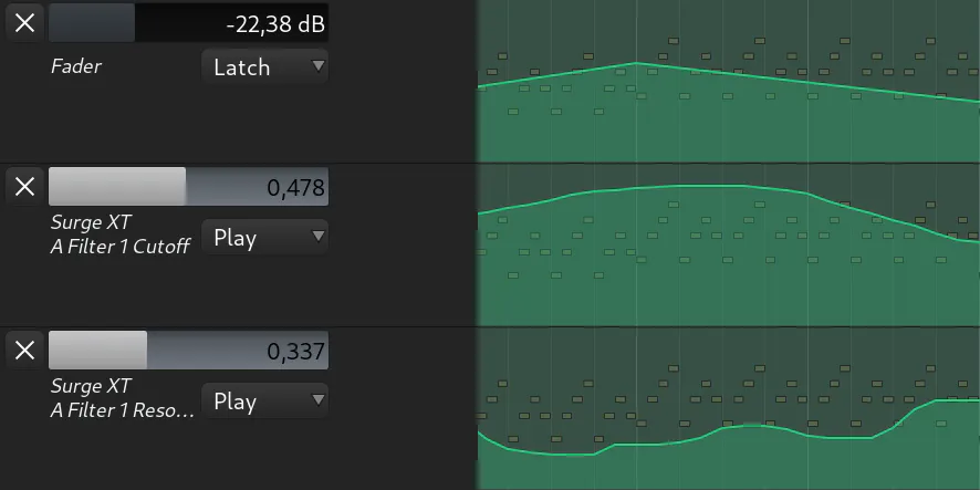Alle bewerkingen vinden plaats binnen het venster: er wordt niet overgeschakeld naar de pianorol of andere aparte dialoogvensters/schermen voor specialistische bewerkingen.
