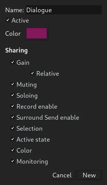 Mixgroepen maken het mogelijk om basis trackeigenschappen zoals opnemen inschakelen, solo en dempen gezamenlijk te beheren. Maar niet alleen de basis: deel selectie- (bewerkings)gedrag, kleuren en monitoringstatus. Verberg/toon groepen in één keer. Maak subgroepen met een paar muisklikken. Routeer groepen via speciale aux-bussen. Pas de groep aan het venster aan.